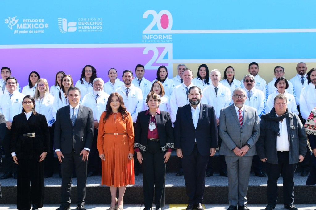 TOLUCA, Estado de México.- La Gobernadora del Estado de México, Delfina Gómez Álvarez acudió al Informe de Actividades 2024 de la Maestra Myrna Araceli García Morón, Presidenta de la CODHEM, donde afirmó que “vulnerar los Derechos Humanos de cualquier persona es, sin duda, una injusticia que no podemos ni debemos permitir, bajo ningún concepto.”