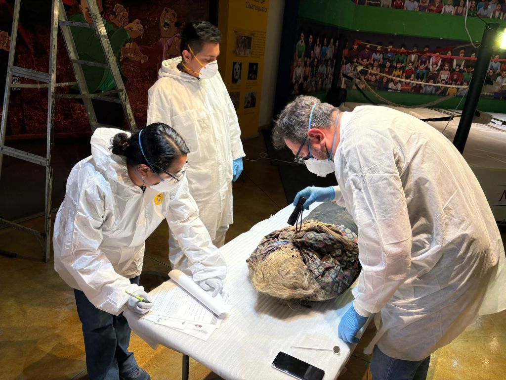 En conferencia de prensa, realizada en las oficinas del Centro INAH Guanajuato, el equipo de investigadores, integrado por los antropólogos físicos Maria del Carmen Lerma Gómez, Israel David Lara Barajas, Samantha Vargas Velasco, Shayra Olivia Chiñas Gómez e Ilán Santiago Leboreiro Reyna, así como por la restauradora Leslie Julieta Cabriada Martínez, detalló que, desde el 13 de enero y hasta el 21 de febrero de 2025, se llevan a cabo diversos estudios a partir del acercamiento directo a dichos cuerpos.