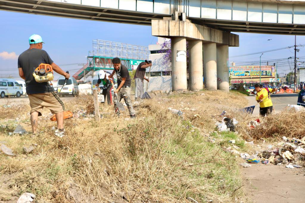 En la jornada participaron 100 servidores públicos pertenecientes a la Dirección de Servicios Públicos, a través de los departamentos de Limpias, Parques y Jardines, así como la Secretaría del Ayuntamiento y la Dirección General de Seguridad Ciudadana y Tránsito Municipal. Además, los vecinos de la zona también se sumaron a estas acciones para contribuir al bienestar de su comunidad.