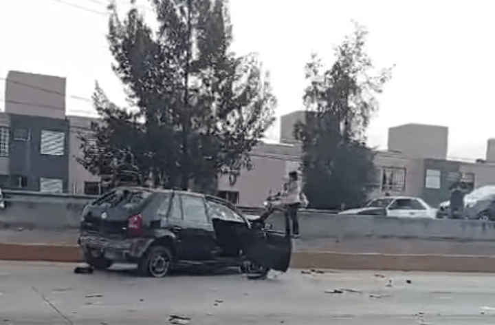 Texcoco, Edomex. 23 febrero 2025. La tarde de este domingo un accidente automovilístico provocó el cierre en ambos sentidos de la carretera federal Texcoco-Calpulalpan, a la altura de la comunidad de Santiaguito, municipio de Texcoco.
