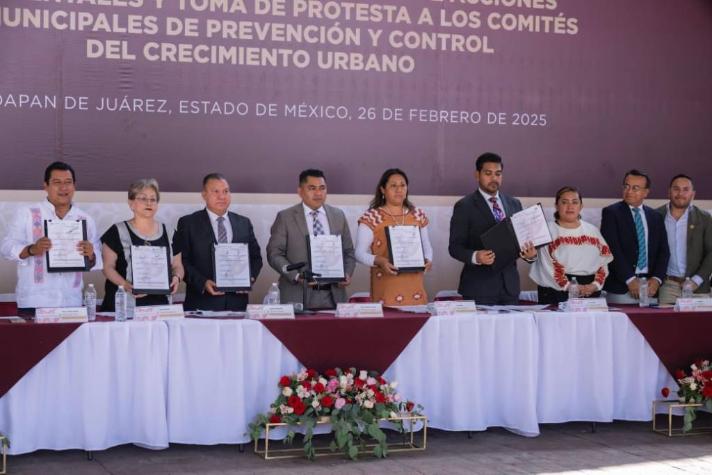 Asimismo, se tomó protesta a los Comités de Prevención y Control del Crecimiento Urbano de los municipios de Chimalhuacán, Chicoloapan, Ixtapaluca, La Paz y Nezahualcóyotl, en los que participan los tres niveles de gobierno, para prevenir el crecimiento desordenado de los asentamientos irregulares.