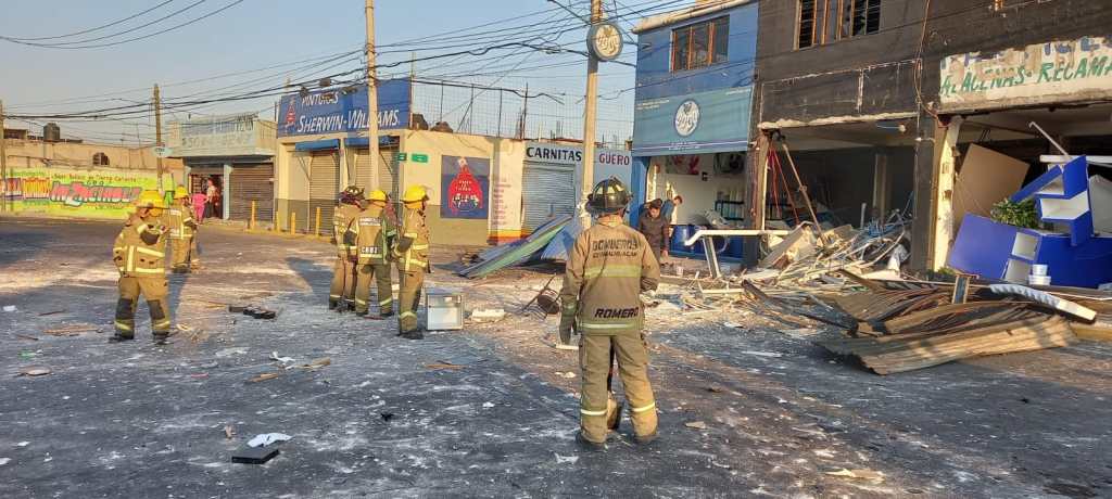 Chimalhuacán, Edomex. 6 marzo 2025. Esta madrugada se registró una explosión en un local comercial en el Barrio Talladores en la intersección de Av. del Peñón y Pochteca.
