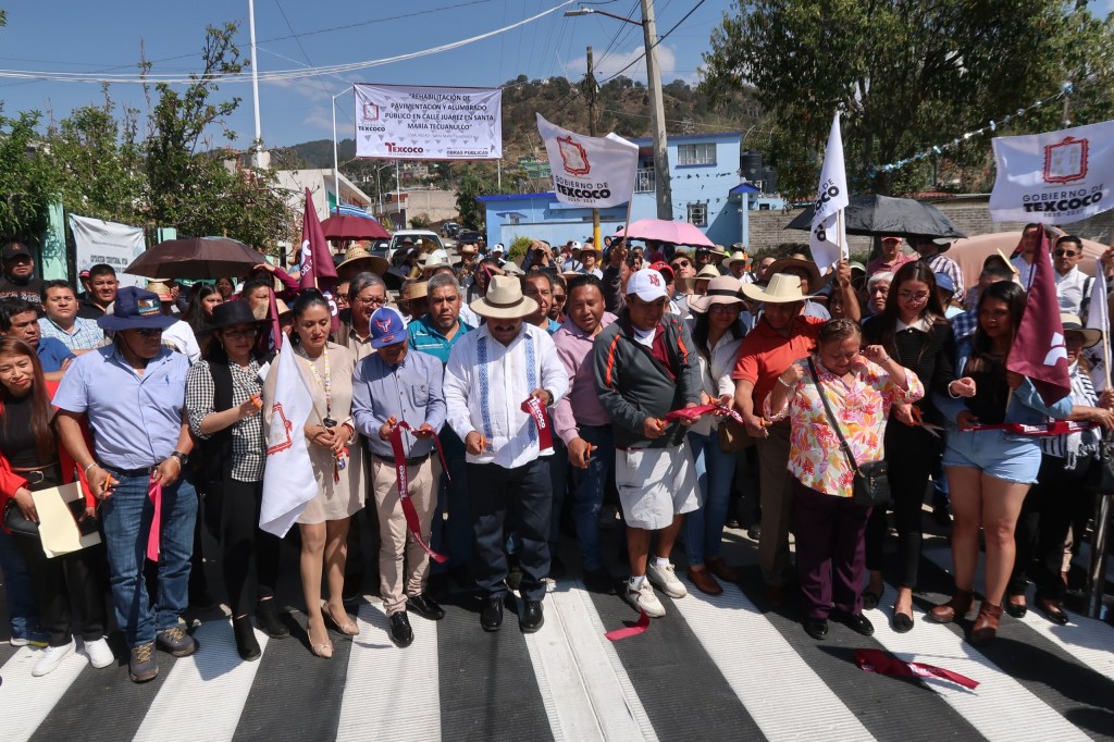 Texcoco, Edomex. 14 marzo 2025. Entregó el gobierno municipal de Texcoco la segunda etapa de la calle Juárez en la comunidad de Santa María Tecuanulco, con una inversión superior a los 11 millones de pesos.