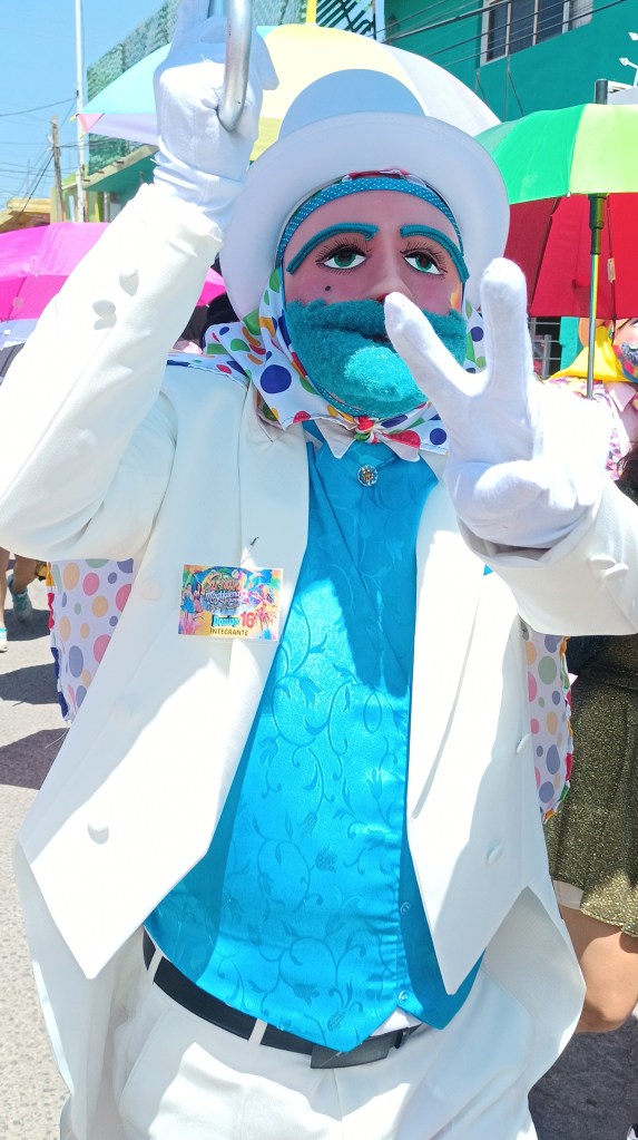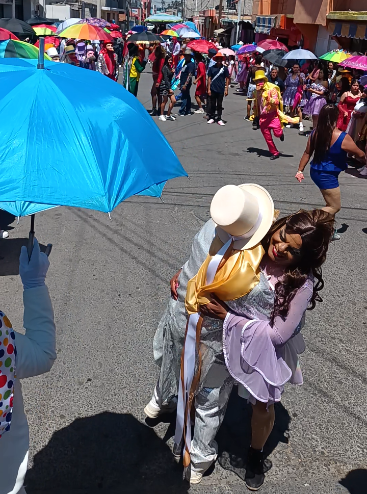Acompañados de su inseparable sombrilla con colores llamativos, destaca la participación de hombres vestidos de mujeres con maquillaje exagerado y pelucas atractivas, que acentúan las curvas de una mujer con vestidos y faldas cortas además de extravagantes zapatillas.