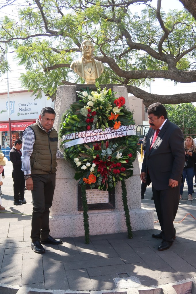 La ceremonia encabezada por el presidente municipal de Texcoco, Nazario Gutiérrez Martínez, contó con la presencia de los integrantes del cuerpo de gobierno, así como de alumnos de la Escuela Primaria Lic. Benito Juárez García, de Santa Cruz de Arriba y el preescolar Josué Mirlo, quienes realizaron la representación de la vida y obra de Benito Juárez, destacando la etapa de su niñez desde donde se forjaron sus ideales que los llevaron a la presidencia de México.