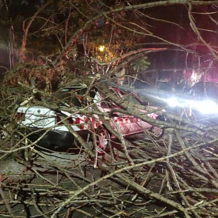 Cae árbol sobre taxi en Texcoco