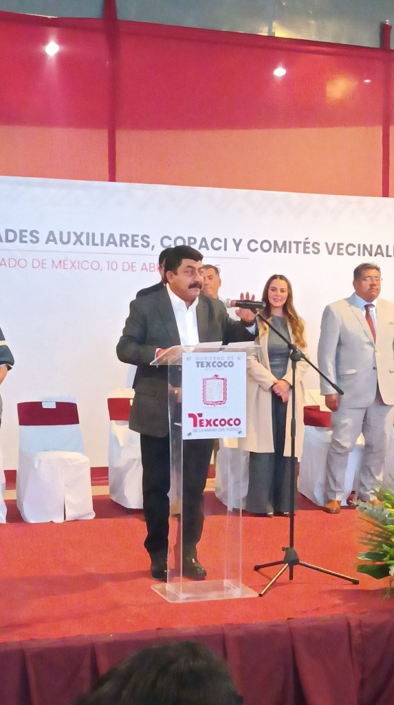 Texcoco, Edomex. 10 abril 2025. En un acto protocolario en las instalaciones de la Casa del Constituyente en la cabecera municipal de Texcoco, Nazario Gutiérrez Martínez presidente municipal, reconoció a las más de 56 autoridades auxiliares quienes durante los próximos tres años darán cuenta de las gestiones y problemáticas que existen en las comunidades y barrios de Texcoco.