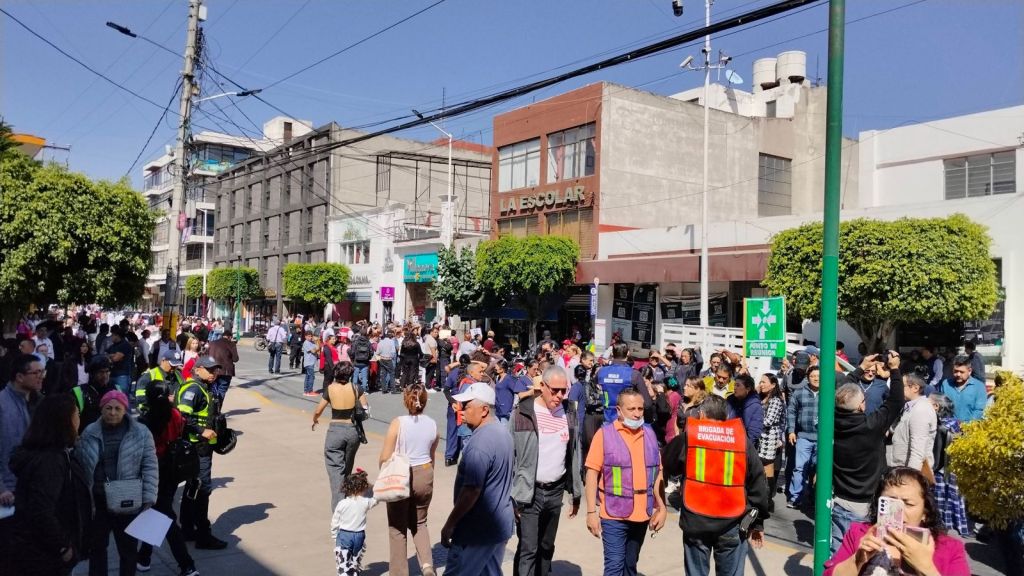 En punto de las 11:00 horas comenzó a sonar la alarma en dispositivos móviles, activando de manera inmediata a brigadistas capacitados en materia de Protección Civil para coordinar el desalojo de espacios públicos, comercios y oficinas públicas para dirigirse a los puntos de seguridad establecidos para estos casos.