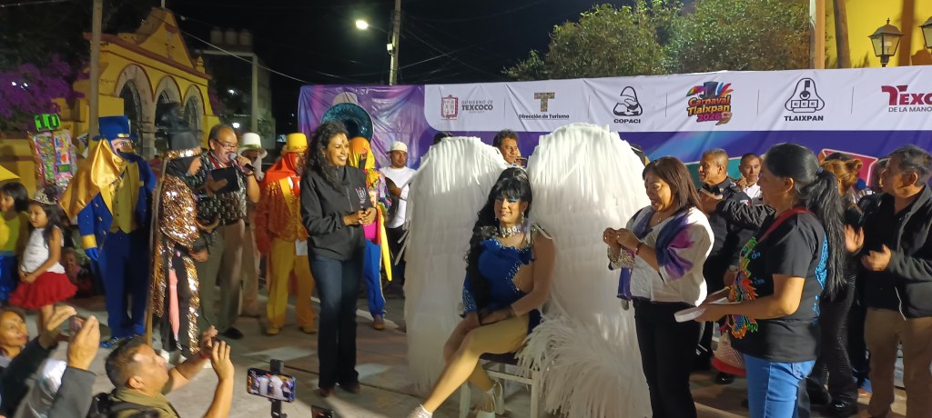 Texcoco, Edomex. 18 febrero 2026. Durante la coronación de la reina del Carnaval de la Montaña, en la comunidad de San Miguel Tlaixpan, Texcoco. El presidente municipal Nazario Gutiérrez Martínez agradeció la invitación de los organizadores y al mismo tiempo aseguró que se apoyará a todos los carnavales y a quienes se acerquen con la directora de Turismo Rossana Espinosa Olivares para revisar este tema ya que en comunidades del municipio varias cuadrillas salen a bailar.