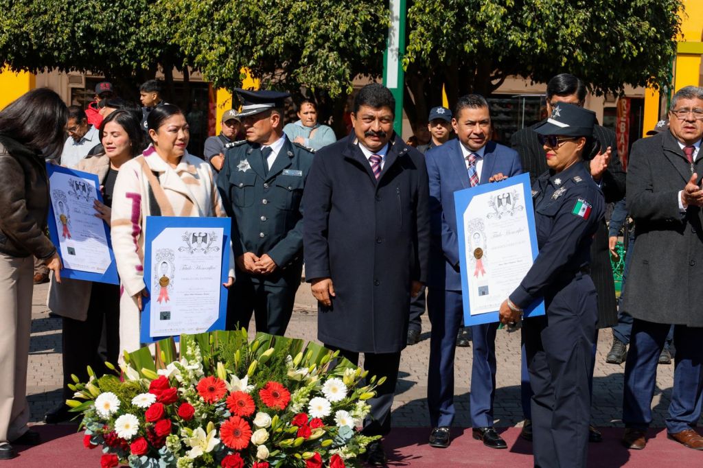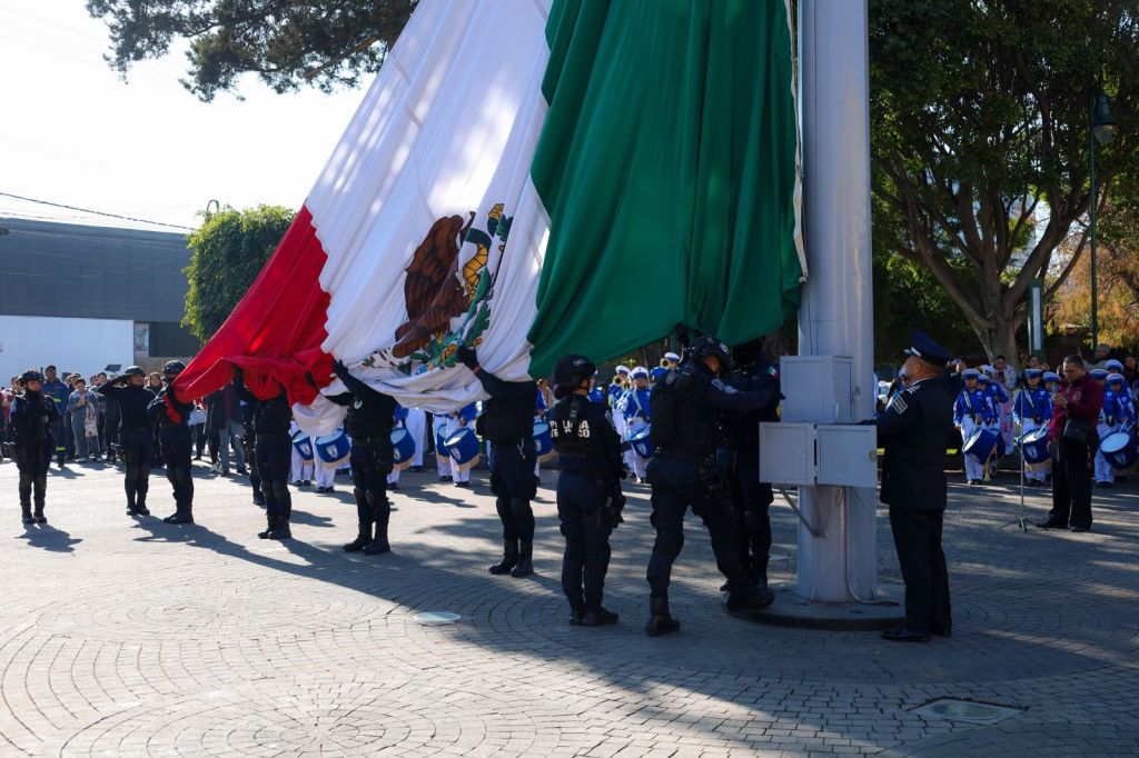 Texcoco, Edomex. 24 febrero 2026. En el marco del Día de la Bandera se destacó la importancia de nuestro Lábaro Patrio en la historia de México como símbolo de identidad y unidad del pueblo mexicano; por ellos en este marco se reiteró el compromiso de reforzar la seguridad en Texcoco con la dotación de equipo a la Dirección de Seguridad Pública y Movilidad.