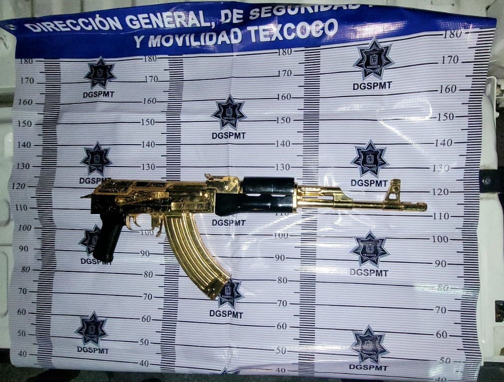 • Al asegurar al sujeto tenía un arma larga de color dorado.