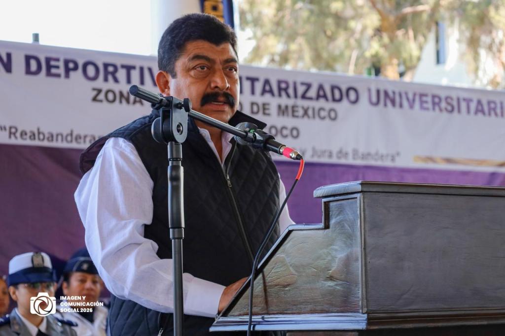 Texcoco, Edomex. 30 marzo 2026. Como muestra de una anfitrionía solidaria y hospitalaria, el gobierno municipal de Texcoco dio la bienvenida 28 Agrupamientos del Pentathlón Universitario de diferentes municipios del Estado de México para el abanderamiento de la subzona XI de esta región.
